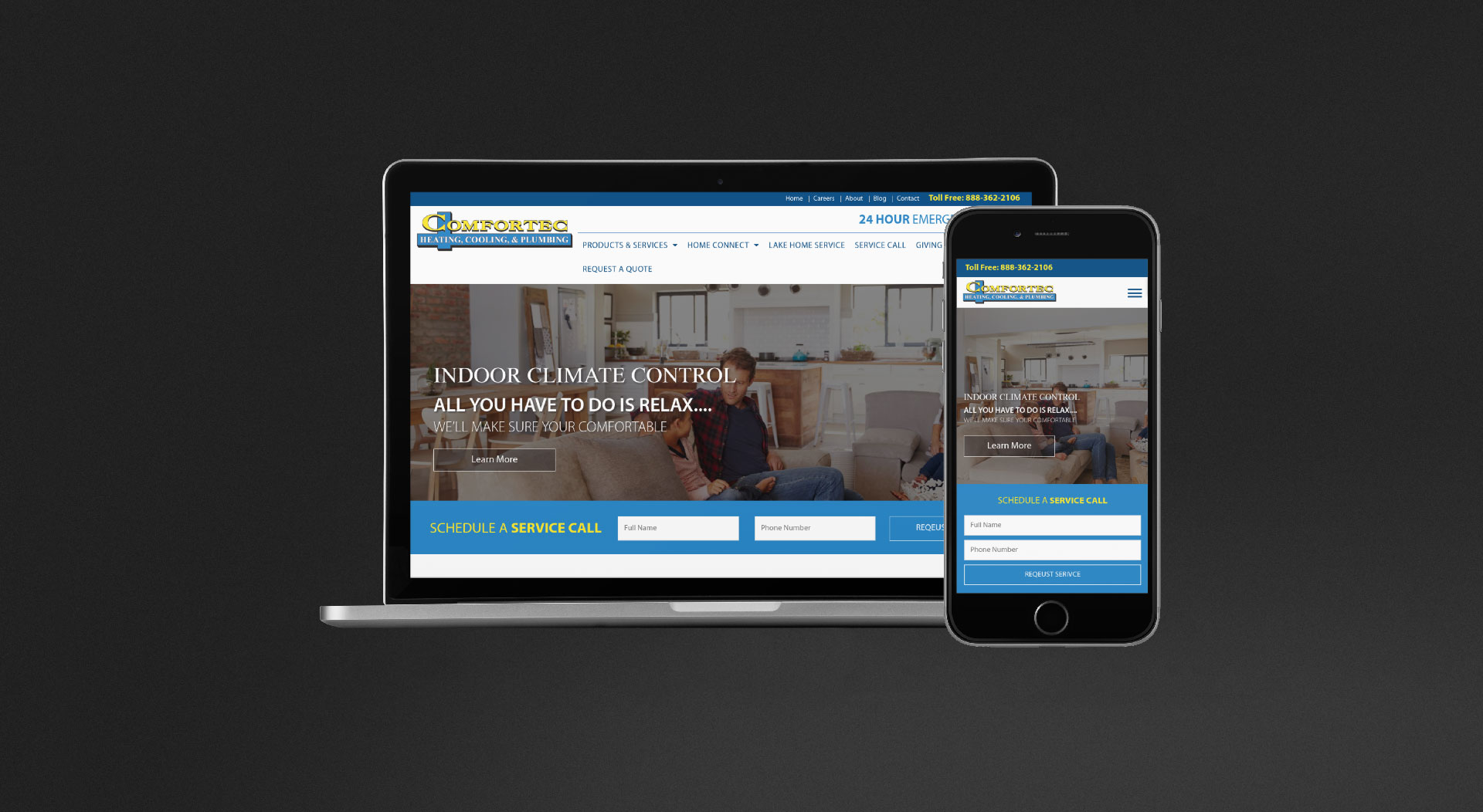 Comfortec prides themselves on quality of service. This quality of service needed to be reflected through their website. They didn’t want to rely strictly on receiving an email when someone filled out their service request form. To help minimize response times, we integrated text message alerts, so service technicians are notified immediately for service requests.